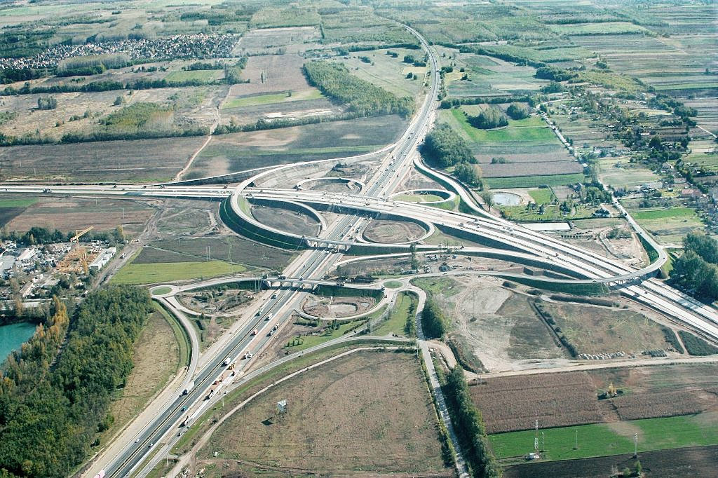| M5 - M0 találkozási csomópontja, a bonyolult és kis áteresztőképességű le- és felhajtókkal - alultervezett, balesetveszélyes |